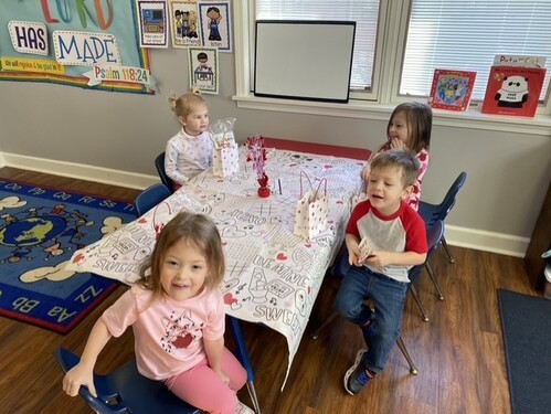 Our two-day-a-week ministry provides parents with a necessary and well-deserved break while allowing children to learn, play, and grow together. Typical activities include art, music, Bible story, free play, learning basic preschool skills, and outdoor play.