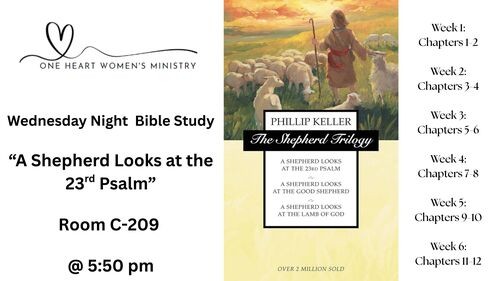 - Bible Studies (Summer, Fall, Spring) - There are a variety of Wednesday night Bible studies at 5:50 PM for ladies throughout the year.